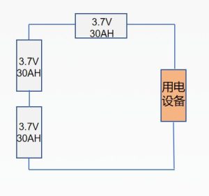 ? ? ? ?串聯增壓:多個單體電芯串聯,只增加電壓,容量不變。例如:三個3.7V 30AH的電芯串聯,電池組電壓:3.7*3=11.1V,容量不變30AH,該電池組為電壓為11.1V,容量為30AH。